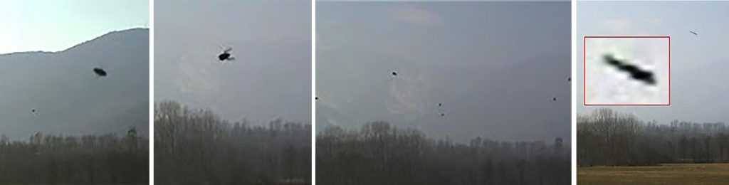 Mediante la sottostante immagine dieci, che peraltro ha fatto abbondantemente il giro in rete generando infiniti dibattiti tra ufologi e non, si vede uno strano oggetto tra i jet delle frecce tricolori.