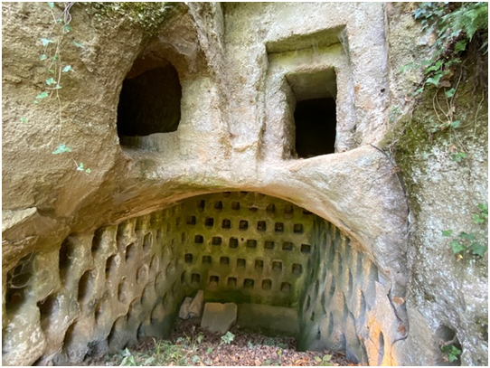 Se nel mondo è prevalso l’uso di incenerire i defunti oppure inumarli direttamente nella terra con o senza cassa e pure in fosse comuni, questo dato di fatto avrà pure avuto un senso ed un valore, primo tra tutti un fatto di praticità e di igiene. La soprastante foto da Grotte di Castro ci fa vedere che i defunti inceneriti, venivano poste le ceneri nelle colombarie e non nella domus de janas soprastante, pura invenzione della damnatio memoriae!
