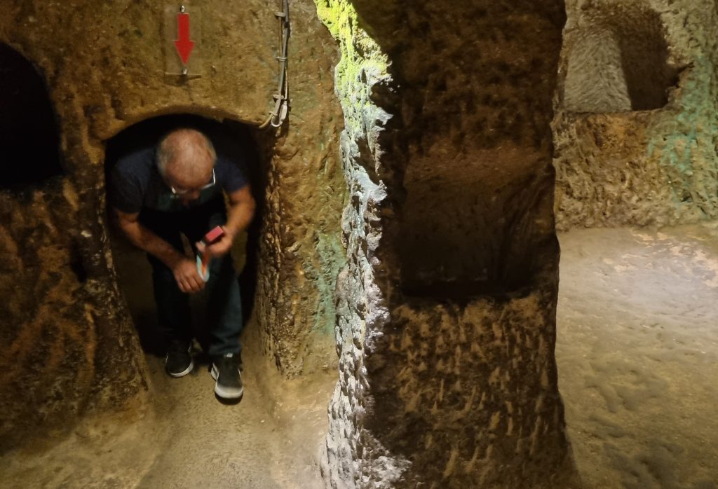 Questa caratteristica non è isolata. In molte aree del pianeta esistono strutture sotterranee analoghe, compatibili con esseri di bassa statura, dotati di corpi flessibili e di capacità tecniche o di una forza che ancora oggi non sappiamo spiegare. Gli erdstall tunnel europei e le città sotterranee dell’Anatolia (foto 5) lo confermano. Notare come il piano di calpestio è stato abbassato per consentire il passaggio dell’umano attuale.