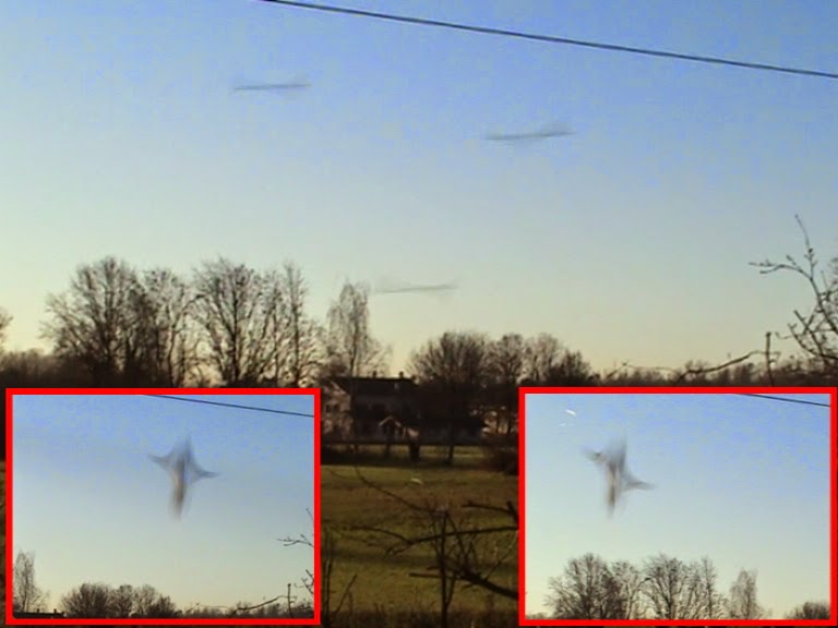 Giravo in genere video di 20/30 minuti, li visionavo su monitor, estrapolavo le parti da indagare ed estraevo i frame importanti. Il sottostante frame ci fa vedere il passaggio di quattro rods. I due ingrandimenti ci fanno vedere due dei quattro rods precedenti mentre un attimo dopo sono passati a poca distanza dalla fotocamera. Potrei proporre decine di video eccezionali del genere, ma occorre procedere.