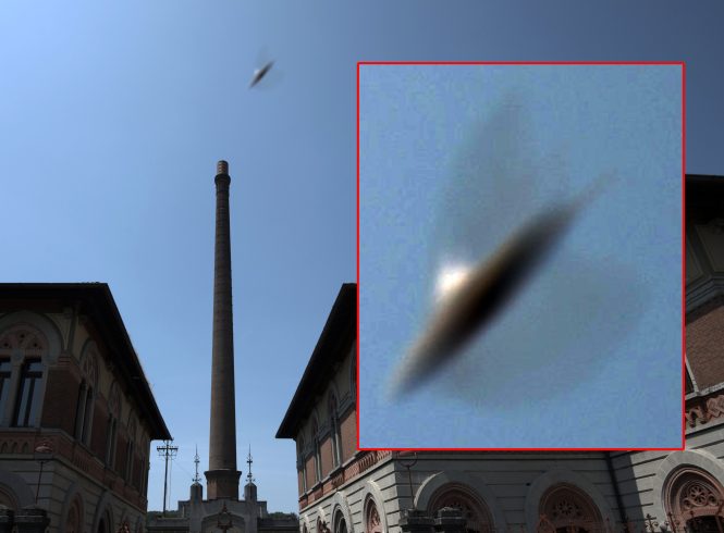Claudia Flore ricercatrice in ambito ufologico, quel giorno, notato un aereo che tale forse non era, incuriosita decide di riprenderlo e lo fa come da sottostante link: https://www.youtube.com/watch?v=jat-WlYj7Z0 Mentre avviene la ripresa del presunto o meno aereo, sfreccia ad altissima velocità davanti alla videocamera, un magnifico rod, come da sottostante estrapolazione del relativo frame.