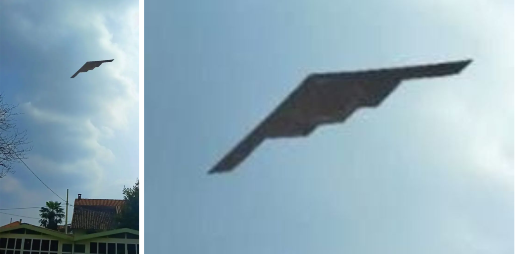 Tutto questo per dire che in circolazione su questo pianeta ci sono i B-2 Spirit veri, ma ci sono pure questi velivoli alieni praticamente identici  se non si va a particolareggiare. Fatto il riscontro; la domanda seguente diventa: è nato prima l’uovo o la gallina?