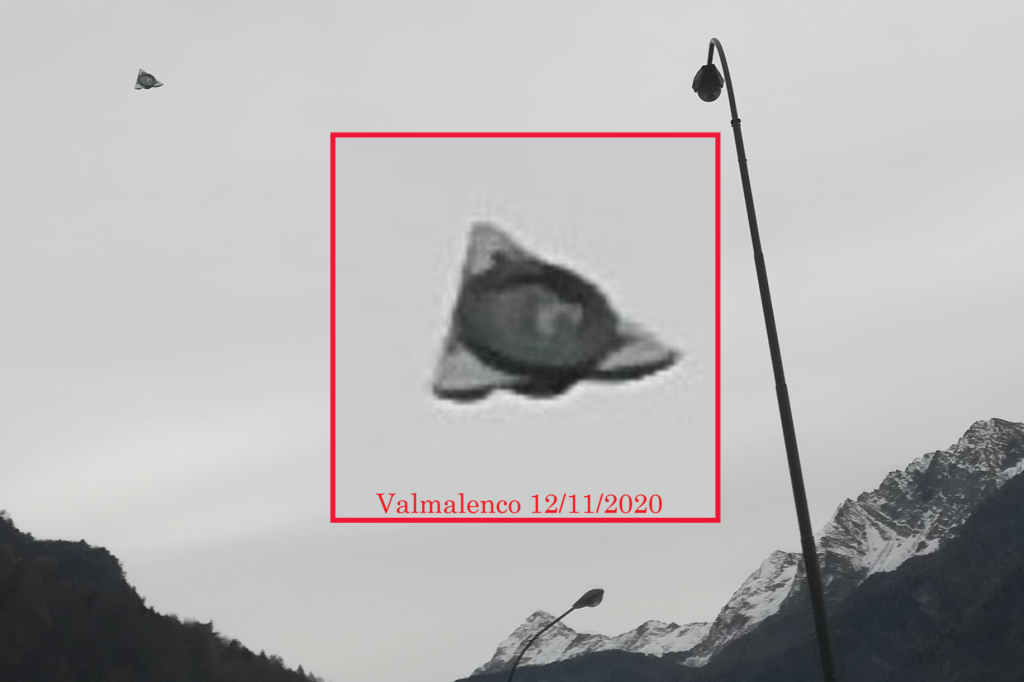 Le soprastanti foto 1/2/6 sono foto veraci con tanto di versione originale a disposizione. Tutte provengono dalla Valtellina e in specifico dalla Valmalenco. La foto sei ci fa vedere in basso a destra, l’arrivo della cabinovia del Palù, pertanto l’oggetto volante in quel frangente si trovava a poca distanza sulla verticale dell’abitato di Chiesa in Valmalenco! Le testimonianze vere ci dicono come stanno le cose; non il mito di sistema!
