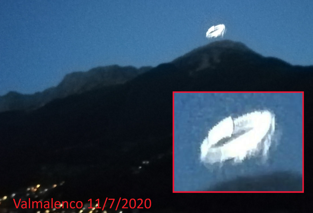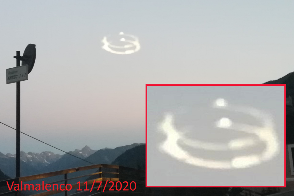 Questo è quanto avvenuto mediante la vicenda dell’11/7/2020, vista e ripresa dalla Valmalenco da A.D.R. sopra la zona di Vassalini. Lo spettacolo è durato parecchio, con riscontro pure nella serata. Il fenomeno prende avvio mediante più presenze sferiche bianche che muovendosi di concerto, eseguono precisi percorsi generanti scie in tondo, che in base alla prospettiva si presentano come ellittiche.