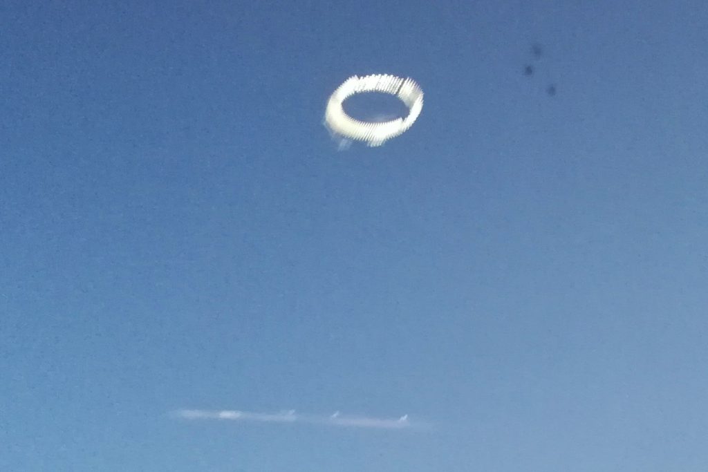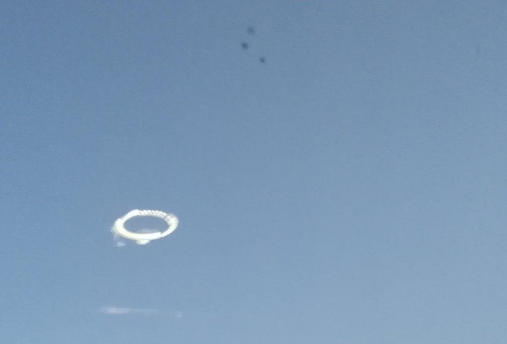 Lasciata la scena precedente, passato un certo lasso di tempo, ecco che in altra porzione di cielo ricompare l’anello. Ora è alquanto tenue, ma pure la luce diurna va cambiando e poi è un po’ come se ci volessero dire: che tu osservatore ci veda o meno, nulla cambia. Ci rendiamo visibili quando, come e dove vogliamo.