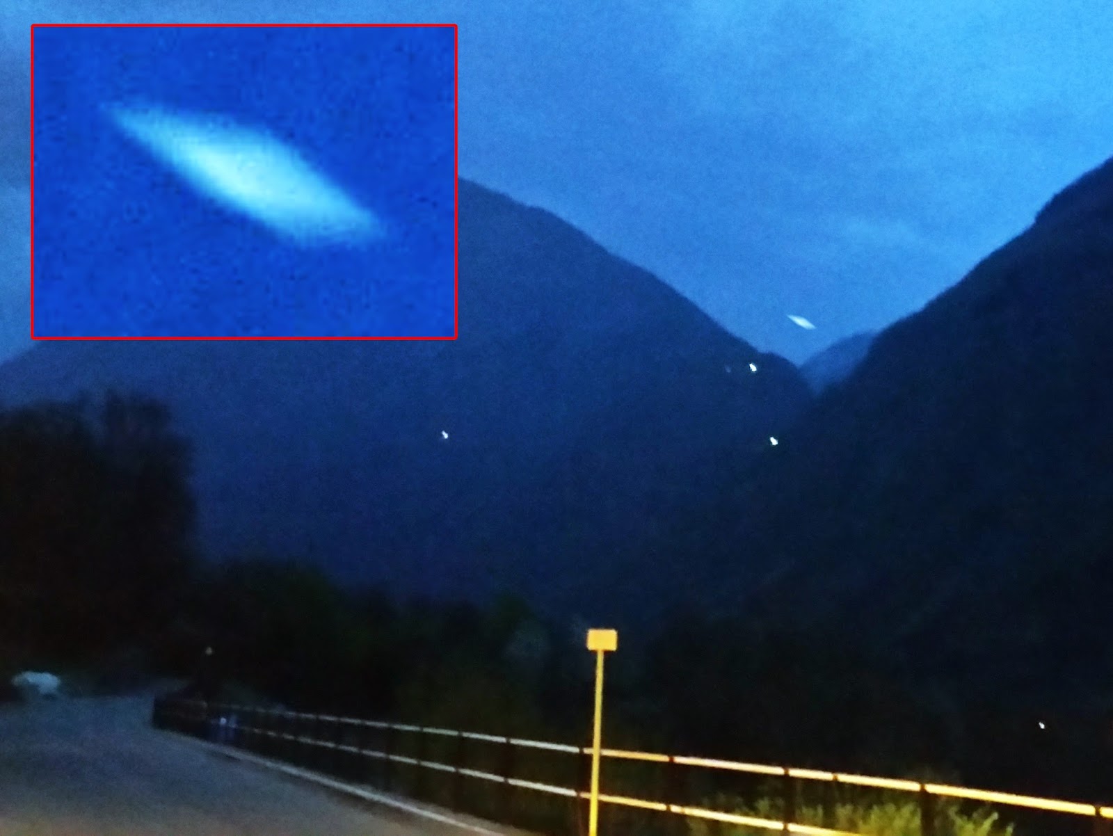 Tale Simone localizzato in frazione Mossini di Sondrio, quindi a poca distanza da Castel Masegra, notava la presenza dell’ufo e riusciva a fotografarlo quando questo già se ne era andato. Le foto nitide inviate con presenza dell’ufo sono tre, di cui la migliore è la sottostante; mentre nelle altre due l’ufo è ormai lontano. Sono le 20.19’.20”, pertanto la durata della presenza dell’ufo in zona sale a oltre un’ora. Altre due foto scattate mentre il testimone era ancora in auto, sono meno utilizzabili; ma servono come conferma generale.