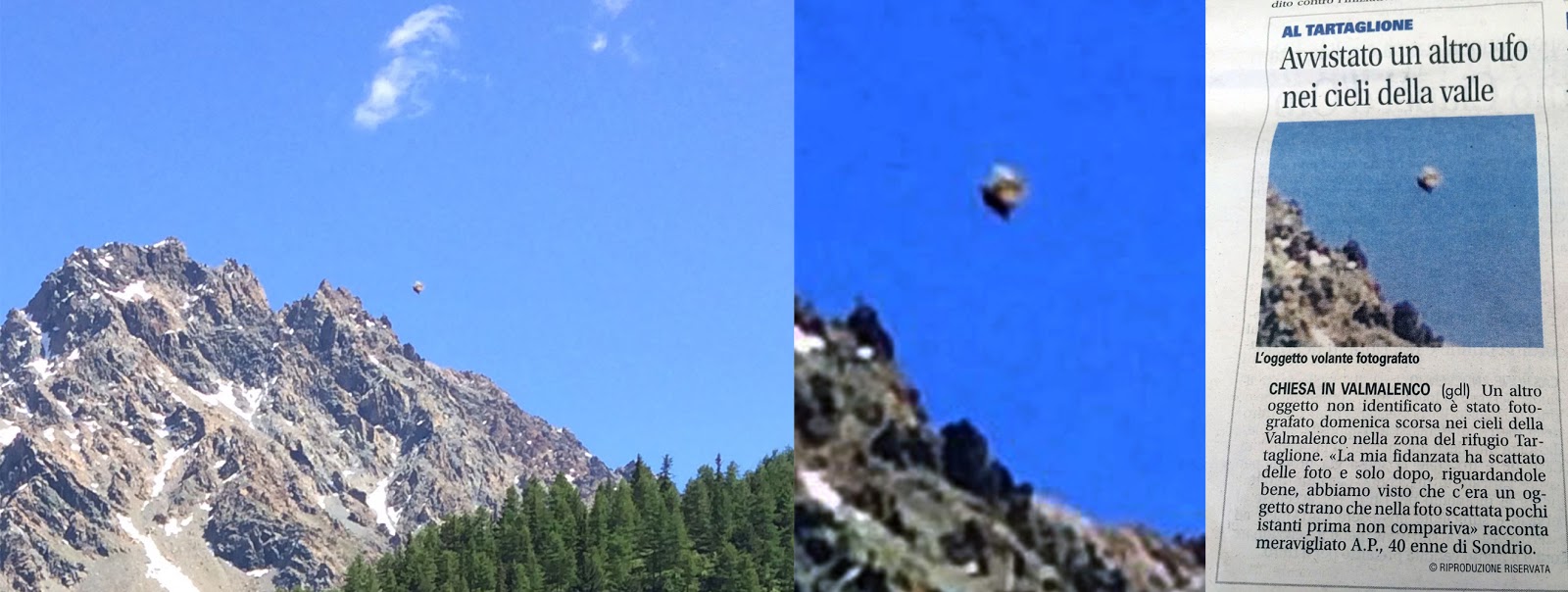 Ne sono conferma le numerose fotografie pervenute. In alcune foto si vede l’elicottero del soccorso indirizzarsi verso la cima del Pizzo Scalino, nella esatta direzione della manifestazione aliena. Osservatori dalla vallata tentavano di comprendere cosa stava accadendo. Alcuni notavano le presenze intorno al Pizzo Scalino, mentre nessun giornalista o professionista della fotografia, ha ripreso quanto gli amatori occasionali hanno visto e facilmente ripreso; pertanto nessuna notizia in merito è trapelata. I fedeli servitori del sistema Italia non intendono mettere a repentaglio il loro posto di lavoro, la loro faccia, la loro credibilità!